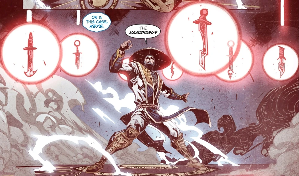 Os Kamidogu personificam a essência de cada um de seus respectivos reinos, e existe um pertencente a cada reino: Plano Terreno (círculos verde e azul), Plano Inferior (vermelha com chifres), Plano do Caos (chifre laranja), Exoterra (Shuriken), Plano da Ordem (quadrado azul) e Edenia (Yin-Yang). Existe um Kamidogu adicional que está conectado a todos os outros e os supera, pois incorpora a essência não apenas de um reino, mas de todo o universo. Esse Kamidogu final revelou-se ser o Amuleto Sagrado, também conhecido como Amuleto de Shinnok.