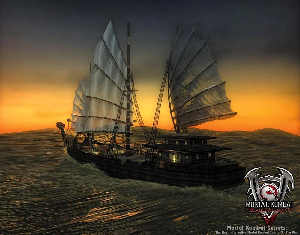Há eras, o feiticeiro metamorfo Shang Tsung usa esta antiga embarcação, a Nave Inferior, para atravessar o Mar Perdido no Plano Terreno até o Portal Celestial de Outworld. Ela também foi usada para transportar guerreiros do continente até a fortaleza insular de Shang Tsung para o primeiro torneio Mortal Kombat .