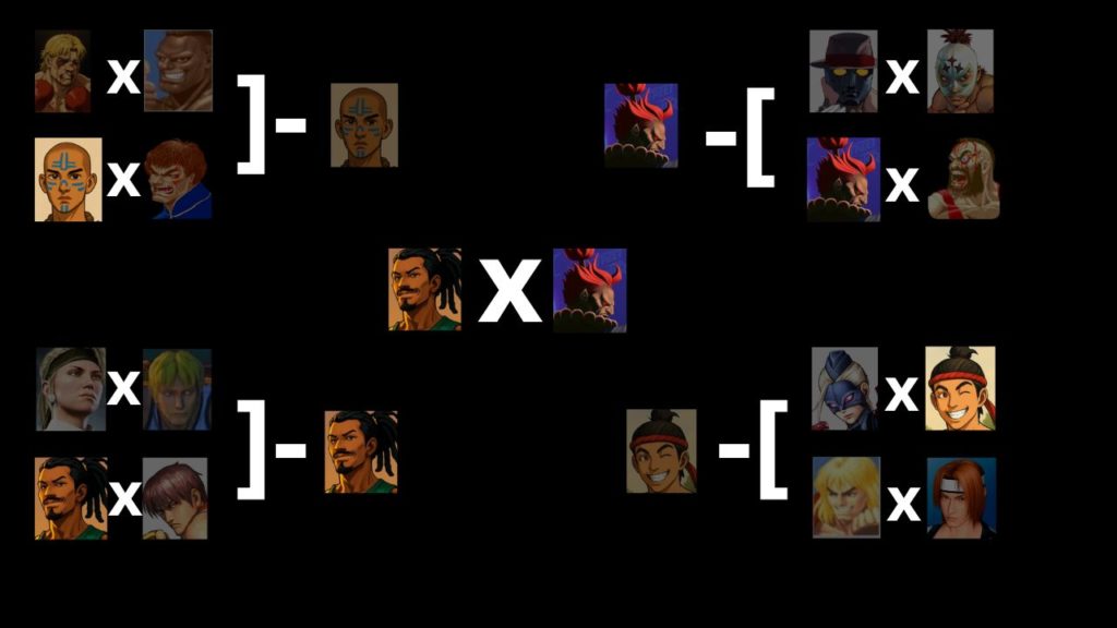 O telão anuncia a quinta luta da primeira etapa: o lendário karateca japonês Akuma, que teria assassinado dezenas de outros lutadores ao longo de sua vida, contra o ciclone vermelho Zangief, que teria feito o mesmo, mas com ursos siberianos. O russo acena para a torcida, que o ovaciona dada à sua popularidade no circuito e os shows de luta-livre que costuma dar. Akuma, sentado nos calcanhares como um samurai, com o cenho franzido e uma aura maligna que pode ser sentida por qualquer um que tenha o mínimo treinamento com o Chi, prepara-se para o início do combate.