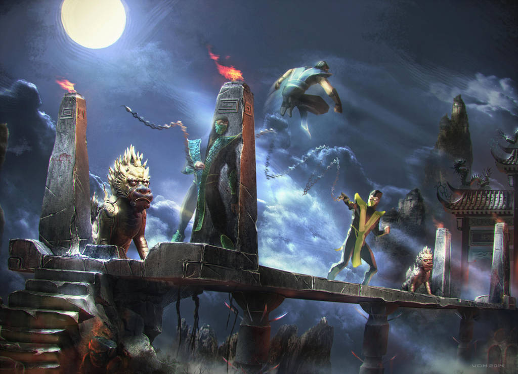 O grupo atravessa o salão principal e sobe as escadarias até a ponte que leva para a ala leste, eles estão sendo seguidos por ninjas de Shang Tsung, mas isso não os intimida já que costumam fazer parte da platéia. O céu está escuro, com nuvens de tempestade e alguns raios podem ser vistos, enquanto que um vento sibilante pode ser ouvido e sentido na espinha. A ponte de pedra é estreita e sem proteções laterais, permitindo a passagem “segura” apenas em fila indiana. Lá embaixo, a dezenas de metros, as formações rochosas formam estalagmites mortais caso algum desavisado resolva cair da ponte.