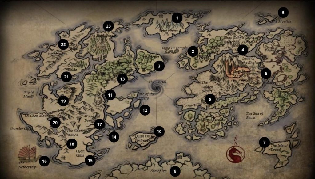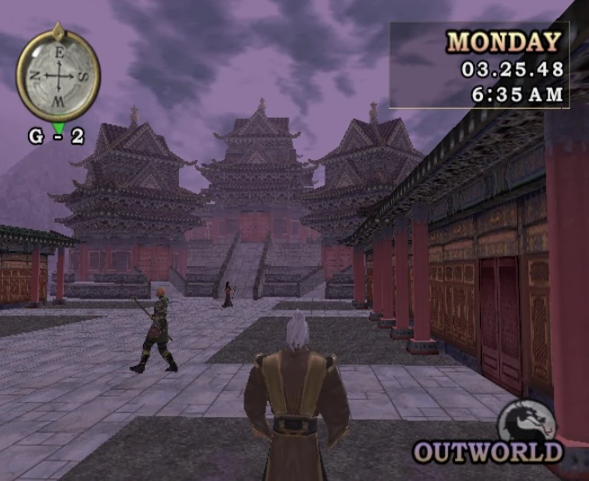 “Qual o plano, Raiden? Para onde vamos?” – pergunta Edu enquanto vestem os mantos dos Sacerdotes Negros derrotados, para se disfarçarem. O deus do trovão olha para o horizonte em duas direções, tentando se lembrar de quando esteve pela última vez na Exoterra, provavelmente há muito tempo. Ele explica que estão no Portal Norte, no Monastério Maligno das Terras Altas de Outworld. Eles precisam ir até a Fortaleza de Shao Kahn na capital, no hemisfério oriental e é uma longa viagem e impossível de ser feita toda a pé, devem ir pelo ar ou pelo mar. À leste ficam as ruínas de Edenia, outro reino conquistado por Kahn e onde podem pegar um navio no porto do Mar de Sangue. Ao sul fica Lei Chen, nas cordilheiras de mesmo nome, onde podem pegar um dragonfly: embarcações voadoras que cruzam a Exoterra em cidades estratégicas como a capital. O grupo opta pela segunda opção, então iniciam a jornada para o extremo sul.
