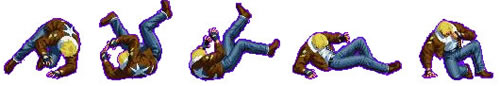Um rolamento no solo, ensinado em diversas artes marciais.