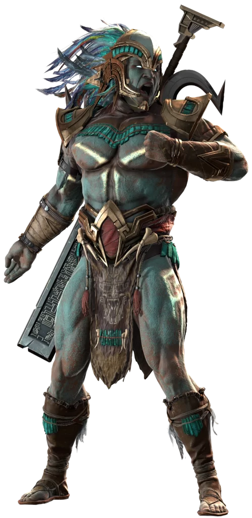 Aparência: A aparência de Kotal Kahn lembra a de um guerreiro águia asteca, os soldados de elite do império asteca. Seu cocar se assemelha ao usado por Huitzilopochtli, o deus asteca da guerra e do sol. Seu traje consiste em braceletes de metal dourado em ambos os braços, além de um cinto que sustenta seu Tecpatl, com um tecido de couro pendurado nele. Também parecem haver vestígios de ossos espalhados pelo tecido. O torso de Kotal Kahn possui diversas tatuagens que brilham em cores variadas, dependendo de sua forma de combate.