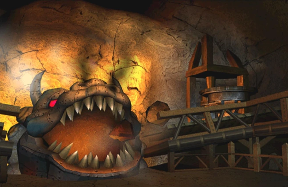 À esquerda dos combatentes há a cabeça enorme de uma criatura mecânica semelhante a um dragão, com fileiras e mais fileiras de dentes afiados; sua boca abre e fecha enquanto os lutadores batalham. Uma Armadilha Mortal ocorre se o oponente for arremessado contra essa cabeça mecânica.